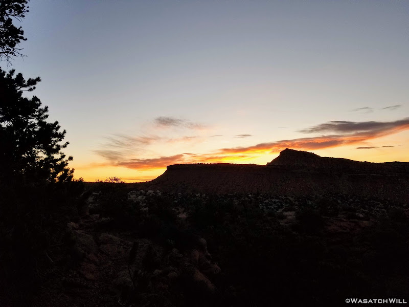 It was a restful, clear, and calm night. I had made the decision sometime during the night to wake up before the sun rose, pack up camp just after sunrise, and start heading back the way I came immediately after. I was going to go back to the road that crossed Tantalus Flat and make another decision there based on time. Plans had been made to get picked up at the Sheets Gulch Trailhead along Notom Road at about 1 pm prior to the start of the trip but that was now looking like it wouldn't happen.