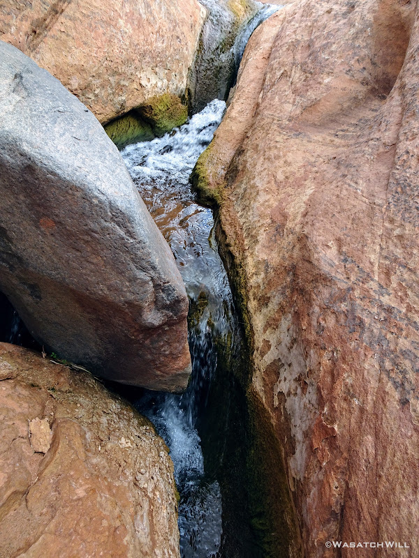 With another half hour to go before it was time to make a final decision, I filtered a bit more water just for good measure and continued on down into the gulch. Even though my decision wasn't yet fully final, I knew I didn't want to hike back up the elevation I had just descended so I was feeling quite sure I was going to push on all the way down and out the gulch now.