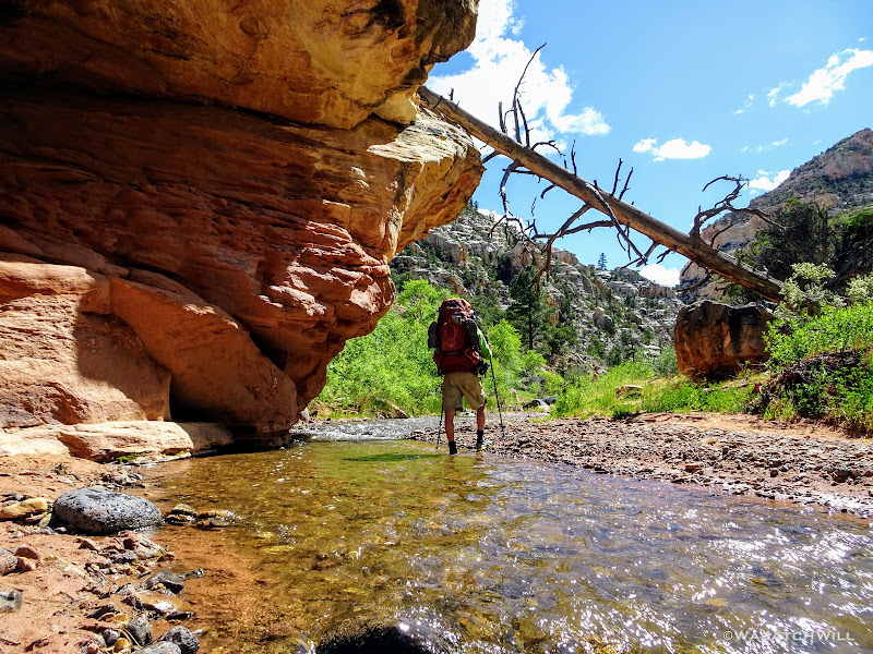 It was about 3 PM. The weather was warm, but not overwhelmingly hot. Indeed, it was pleasant enough, for a pleasant walk up Pleasant Creek as a I retraced the path my wife and I took exactly one year prior. Though this time, instead of an out'n'back, I would venture further on with my sites set on new ground, new landmarks and geological features to see, along an overnight end-to-end hike.