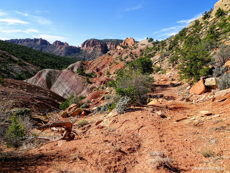 I followed the path down along the bench, then further down as it dropped into a gulley, still leading the way down to Sheets Gulch. There were a few little obstacles along the way in the form of short little dryfalls to navigate around and bypass to keep it entertaining.
