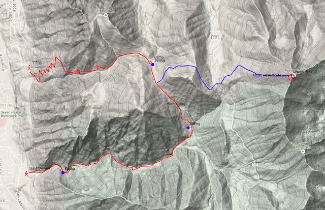 Provo Peak was his 3rd of the day already, having done Nebo and North Nebo. After Provo and East Provo, he would go on to North Timpanogos, Timpanogos, South Timpanogos, and Box Elder. It's neat to know we got to witness him in the act of completing his historical ultra adventure. He didn't quite complete the feat in 24 hours, but my hat is off to him for still doing it all in one stretch. And I thought I was tough at one point in my life when I had been a cross country runner and had run a couple full marathons. It is flat out amazing what others can train their bodies to endure.