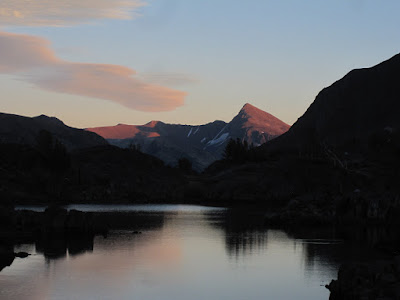Hmmm. Not what we like best about backpacking. So we went off trail up to little Z Lake, nestled in the middle of the loop trail, but about a half-mile from any of the loop trail itself. It was a smart move. We saw only one other person while we were there--a dayhiker who looked somewhat confused--and we had a peaceful, lovely afternoon and evening in the High Sierra. The views here are gorgeous, and sunset was spectacular.