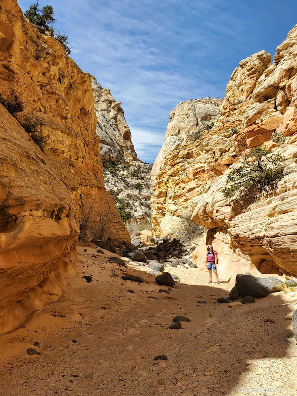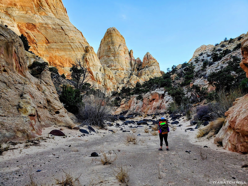 Jess forges ahead in a canyon.