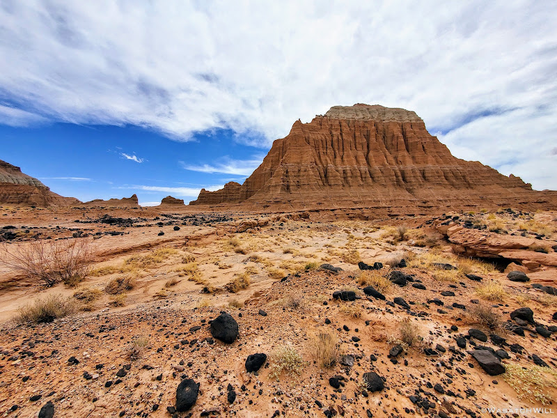 Rounding around a sizeable butte.