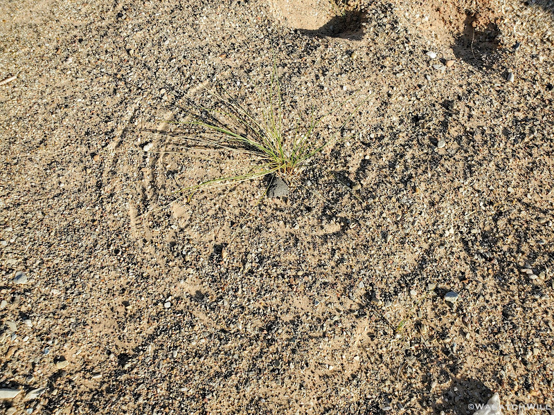 A 'scratch-circle' along the canyon bottom. This phenomenon occurs when wind bends over a grassy stalk causing it to sweep and pivot around, scratching a perfect circle, like a compass, into the sandy surface beneath.