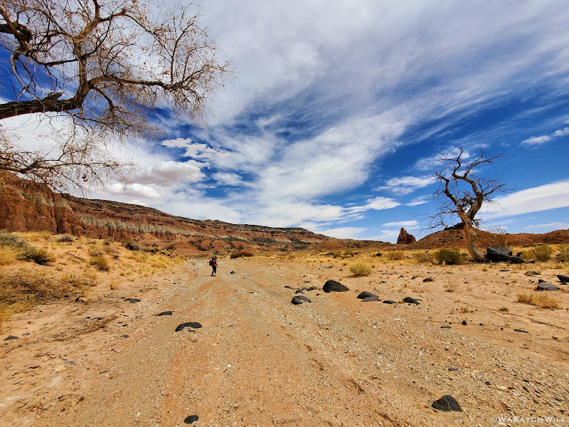 Out of the canyon and along the wash.