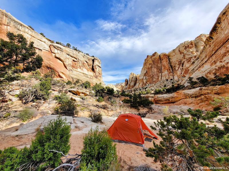 Eventually, we made it back down to camp where we made another big decision: lay down in the tent for a late afternoon siesta or wander back up the side canyon where the water was flowing a short distance and soak our feet for a bit there.