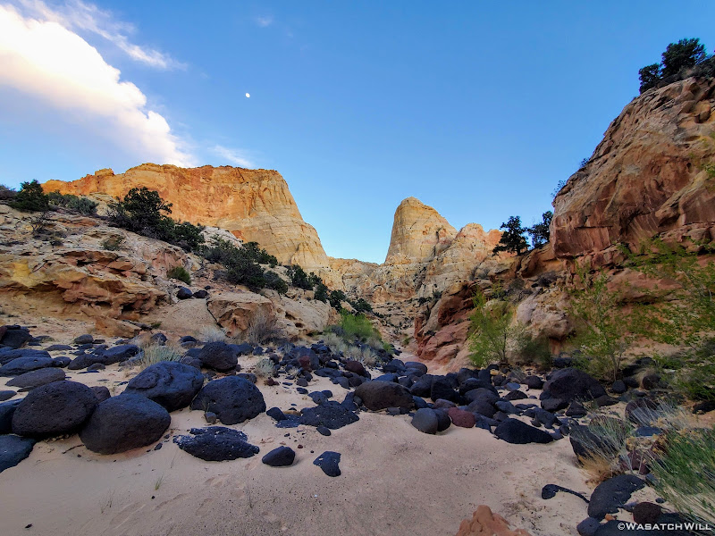 From an unexpected pour-off to a high bench to bypass it that became riddled with sensitive cryptobiotic soil we had to play hopscotch with followed by a roller coaster of little side drainages to traverse over and over that became really tedious after only a few of them, our progress had slowed down immensely. We ultimately decided that even if we could make it, it would be a very strenuous and time consuming process to reach our target. That would likely result in hiking back down canyon in the dark for the last couple of miles back to camp. It just wasn't worth it knowing we could reach it from another direction with much less effort so long as more time was allotted for traveling the rough road.