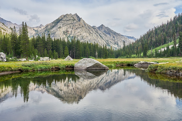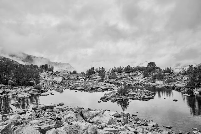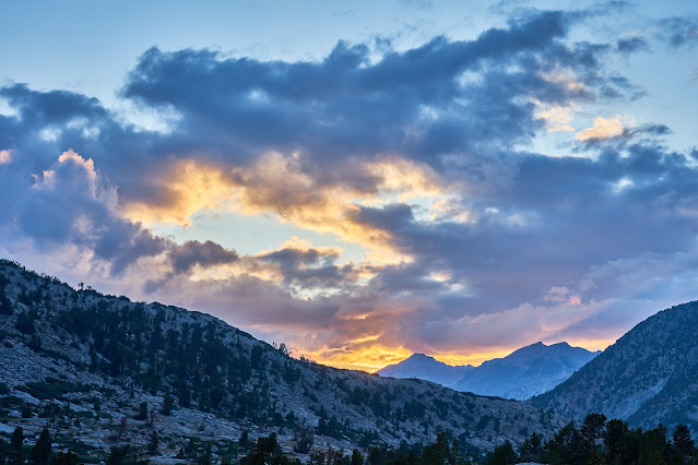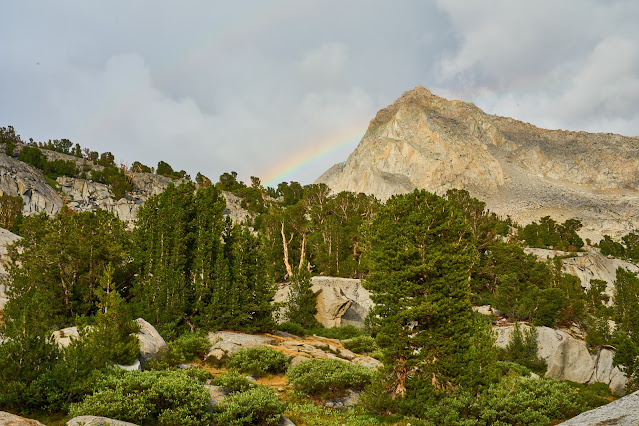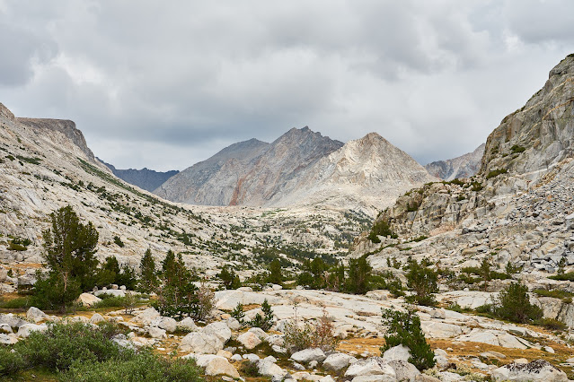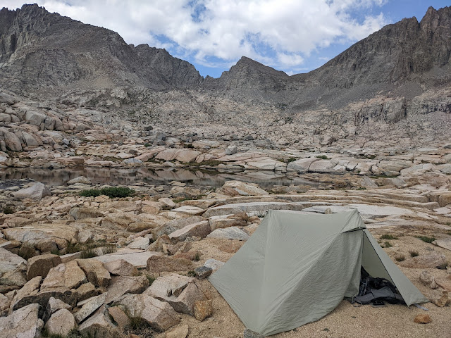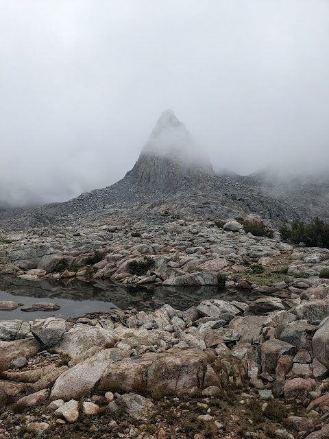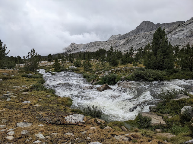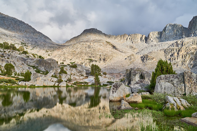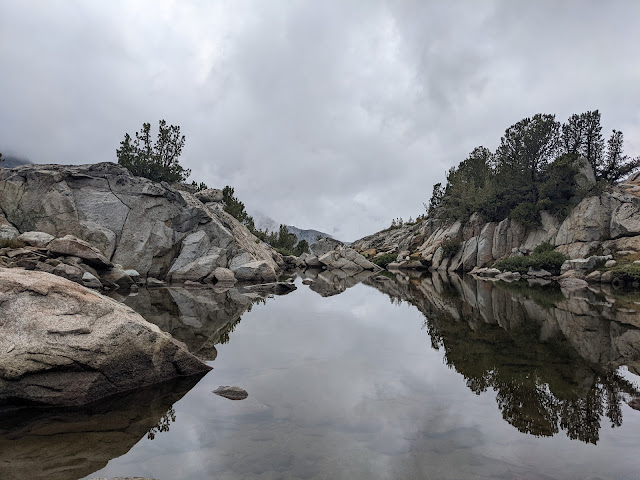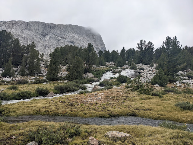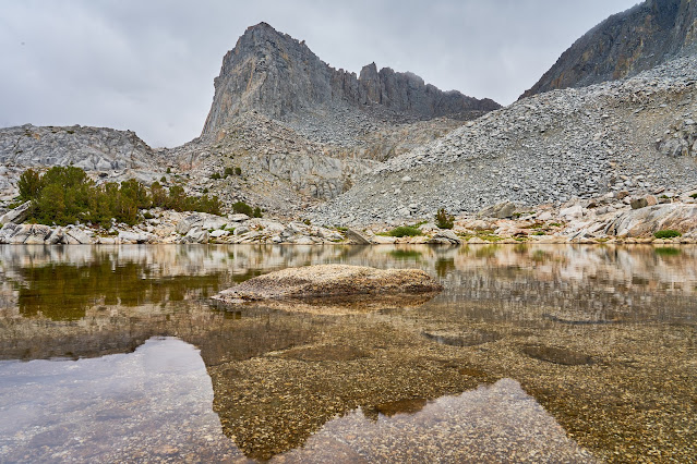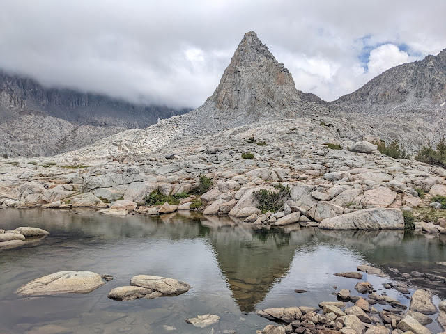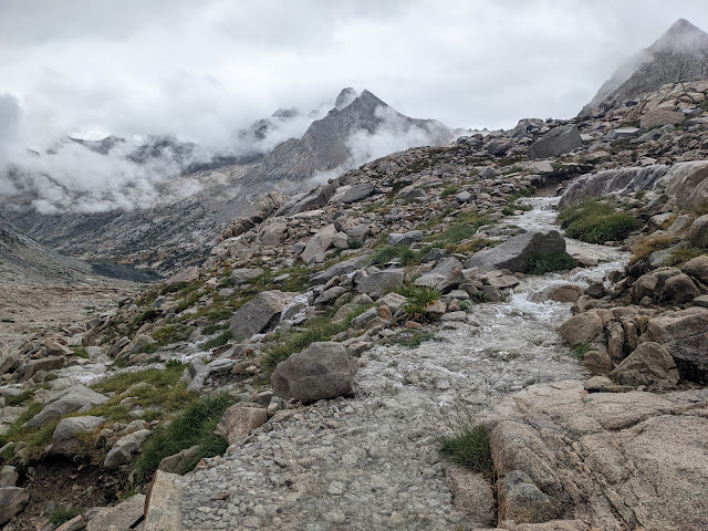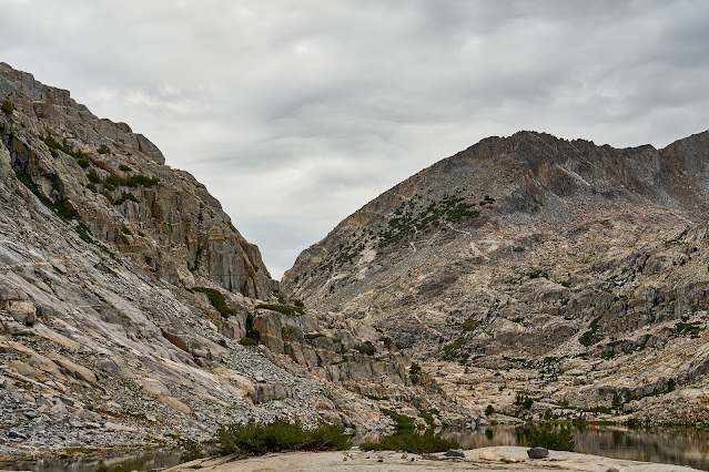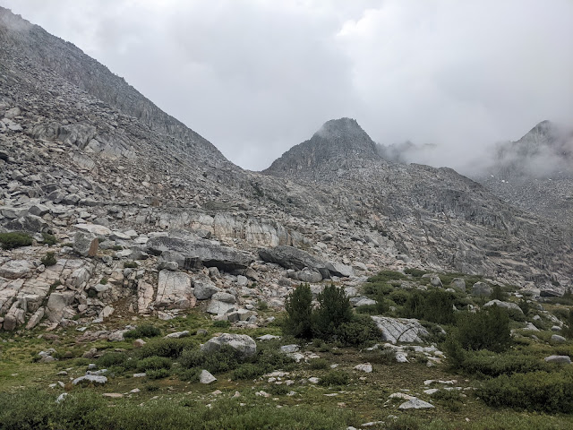 I did a bit of wandering around upper Dusy Basin in between rain, thankfully it never did more than drizzle and never for long. I spent quite a bit of time reading in the tent, but I was able to get out and explore a bit. It ended up being a good rest day, but I would have liked less rain to really explore Dusy.