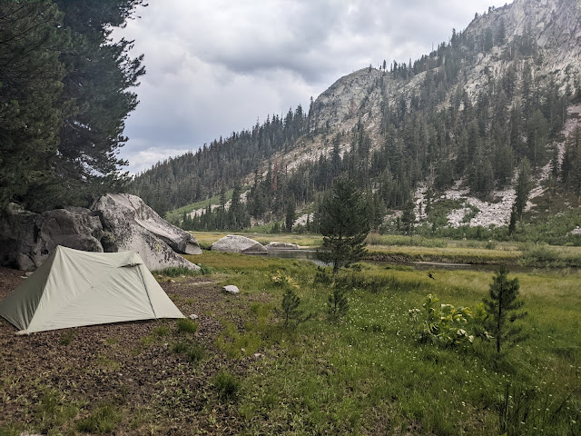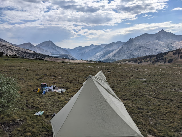 I set up early because I had thoughts of tackling Split Mountain, but the clouds were getting thicker and I didn't really have it in me to climb another 2000 feet. Not long after this photo, the wind picked up and the rain started and then the hail and graupel. Thankfully, everything blew over in about an hour.