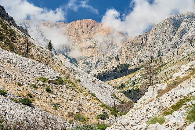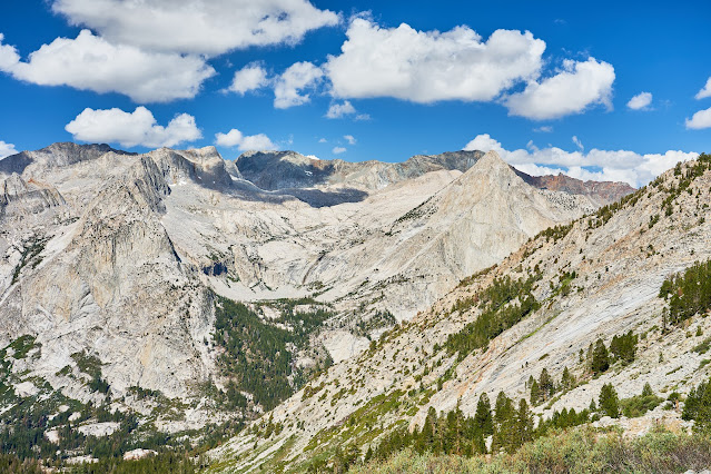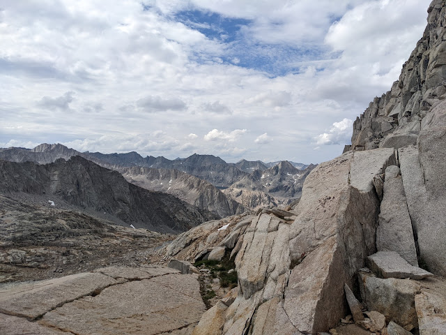 I packed up and took another look at Split Mountain and then headed up to Mather Pass. This is looking south from below the pass.