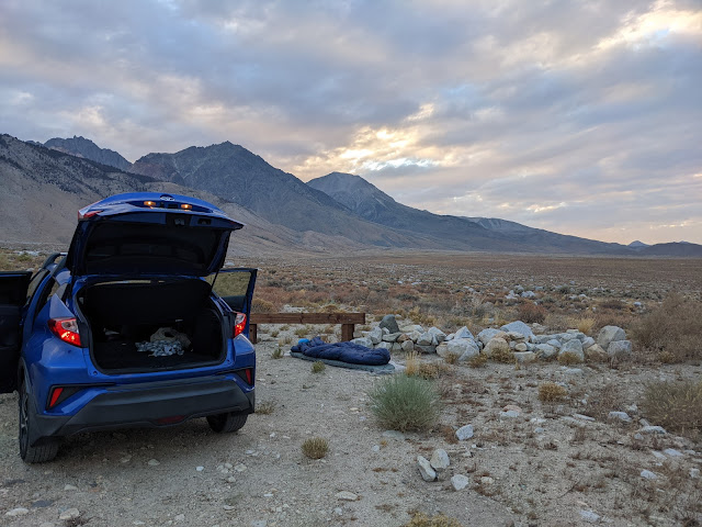 I flew into Reno, got my car and drove south to Taboose Pass. Nasty weather to the south, I hope I don't have to sleep in my tiny car.