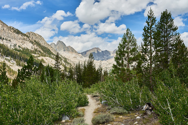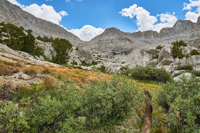 I passed through the basin and the Palisade Lakes. The bee sting on my hand was still itching and was a little swollen. It wasn't getting worse but still annoying. I happened to talk to a JMT hiker at the lower lake and she said she had tons of different medicines including Benadryl. She gave me a couple and that seemed to make the problem go away.