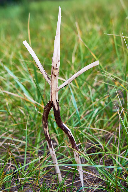 At one point, I did not feel like reading and decided to play with my knife for a bit, watch the deer, whittle a stick. One thing lead to another and this popped out. I left it propped up near the fire ring, hopefully it made someone smile or just say "what the hell?"