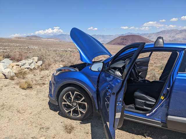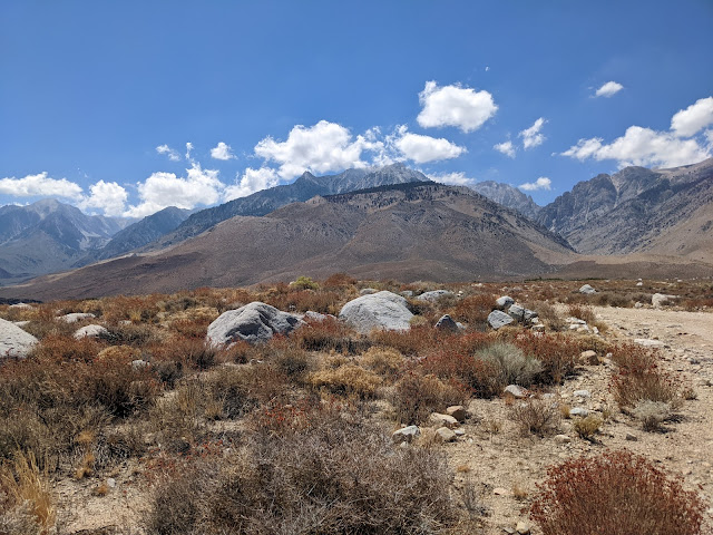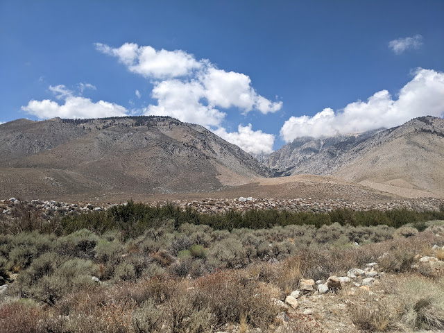 I got to the car and the battery was dead. I had cell service so I wasn't going to die. I debated calling the rental company but was afraid that I had violated the rental agreement by taking it off pavement. So, I called AAA. It took a bit to make them understand where I was and they called a tow truck in Bishop. Should be there in an hour. After about 90 minutes, I called AAA back. After some confusion, I was given the number for the truck and could actually talk to someone from the area. But, he did not really know where I was either. We zeroed in on the Taboose Creek Campground and then I described the road to the trailhead and he was finally heading my way. After another hour, he called me back and said that he did not know if his truck would make it up the horrible road. A little begging and pleading on my part and he agreed to give it a try. I could see him slowly making his way closer and eventually he made it. He pulled out the battery pack in the car started right up.