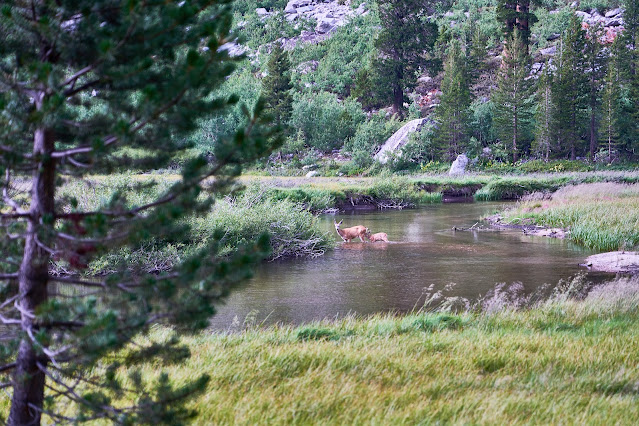 There is a great swimming spot where the river widens and slows so I jumped in and floated in the current for a bit. Later I watched this doe and baby ford the river in the same spot.