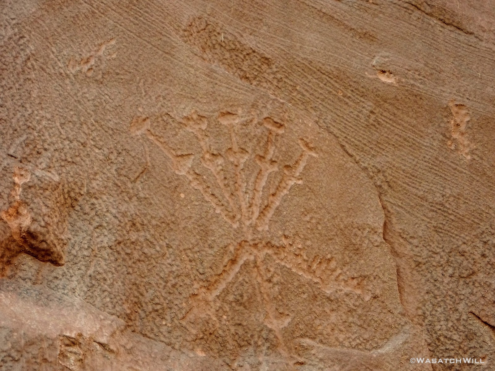 Once down into the bottom of the draw, it was a fair simple and straight forward drive along much of the wash to the Pleasant Creek crossing. There, we pulled over at the trailhead so I could lead Lennox and my father-in-law along for a short hike up to a couple of petroglyph panels.
