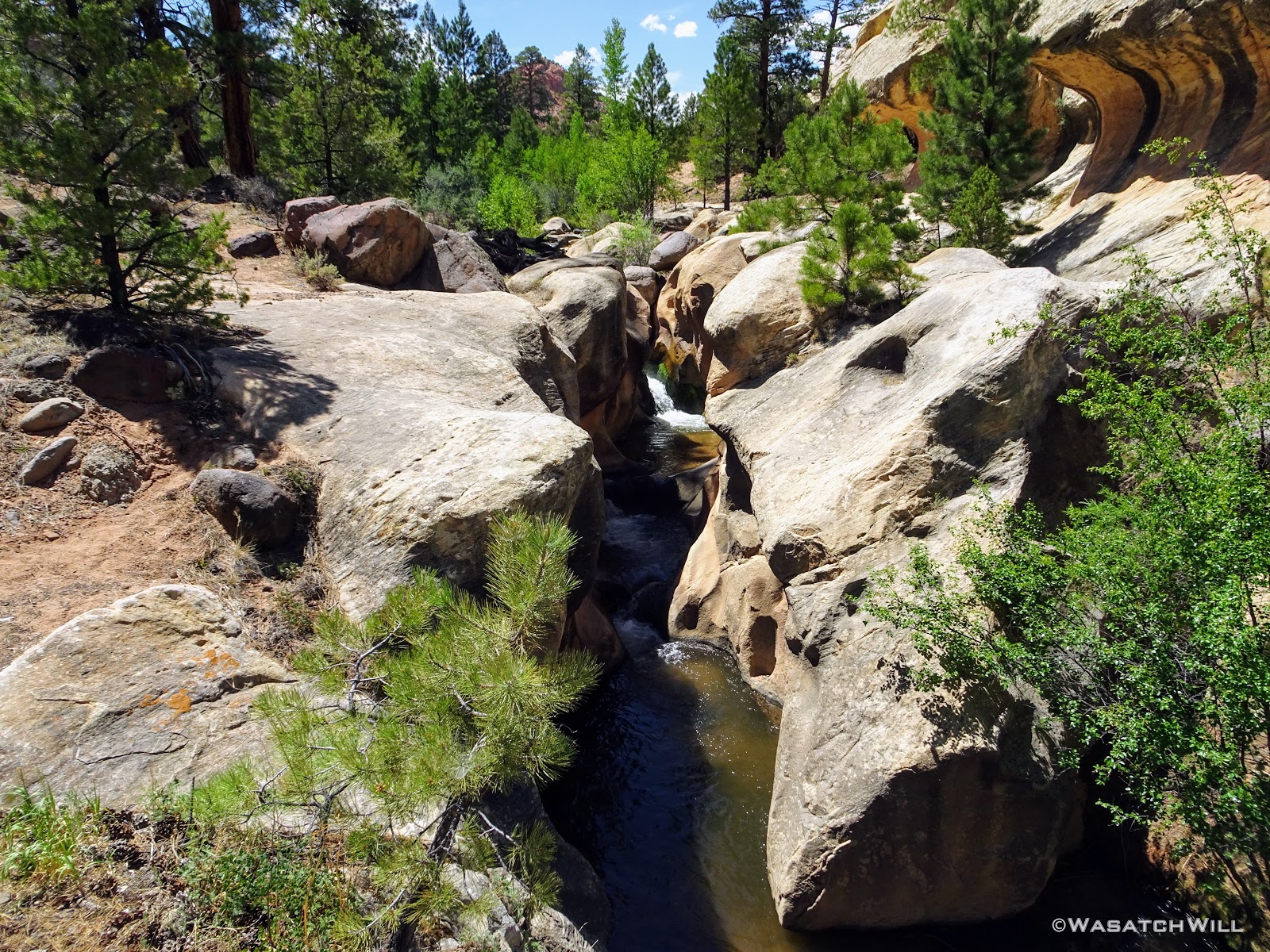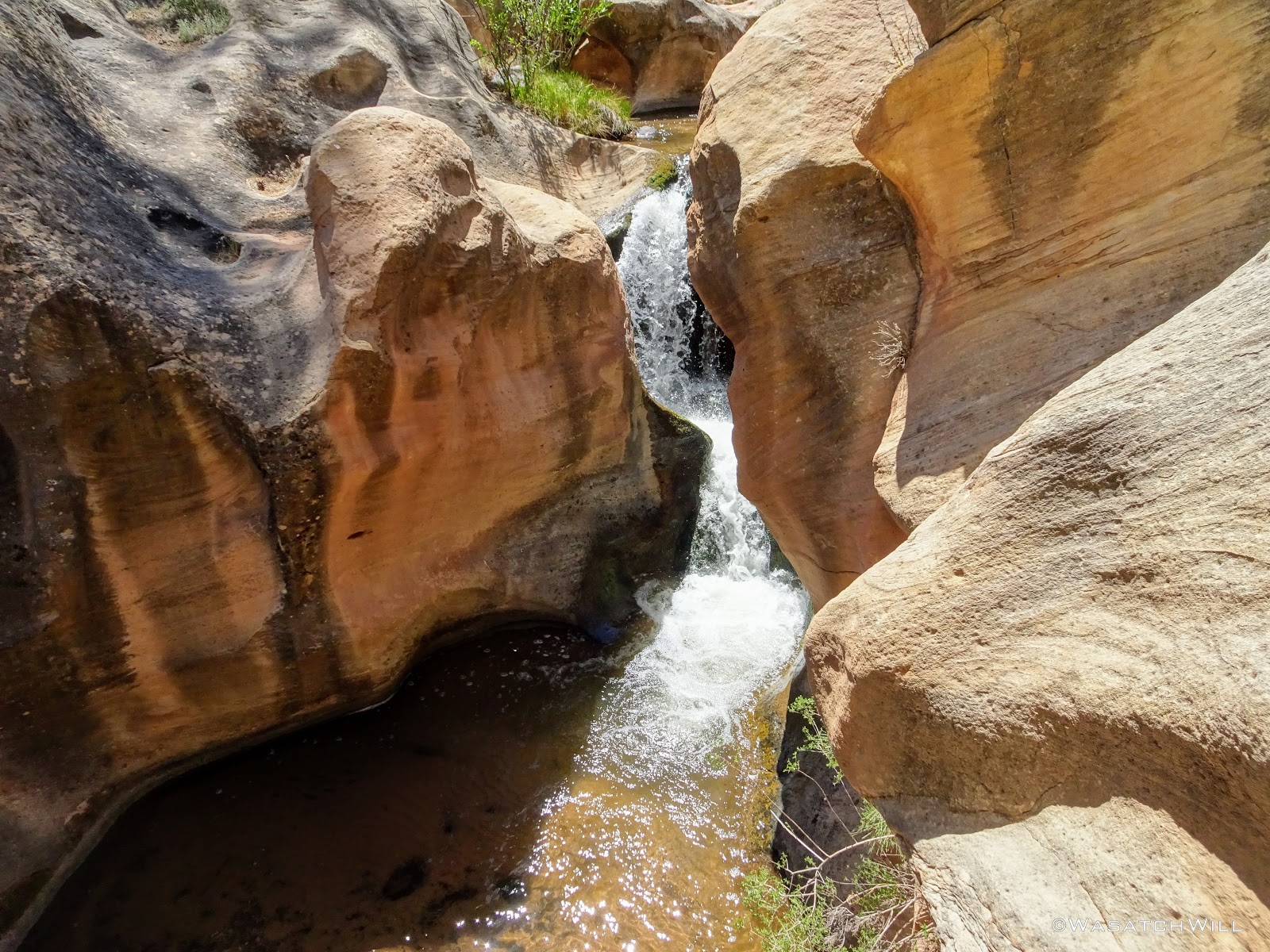 Moving on, we took a little short side road out to Pleasant Creek to enjoy the little slot and waterfall in action there. It sure felt different driving down to it this time from above than hiking to it from below as I had done so the year before.