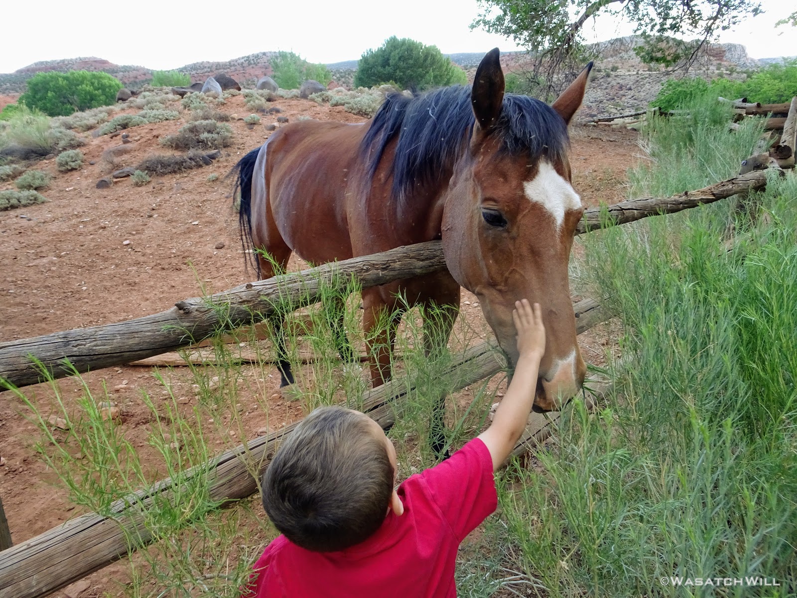 Along the way out, we made another brief stop in Fruita so that Lennox could check out the resident horses. Horses are among his favorite animals and he's always thrilled when he gets the chance to interact with one.