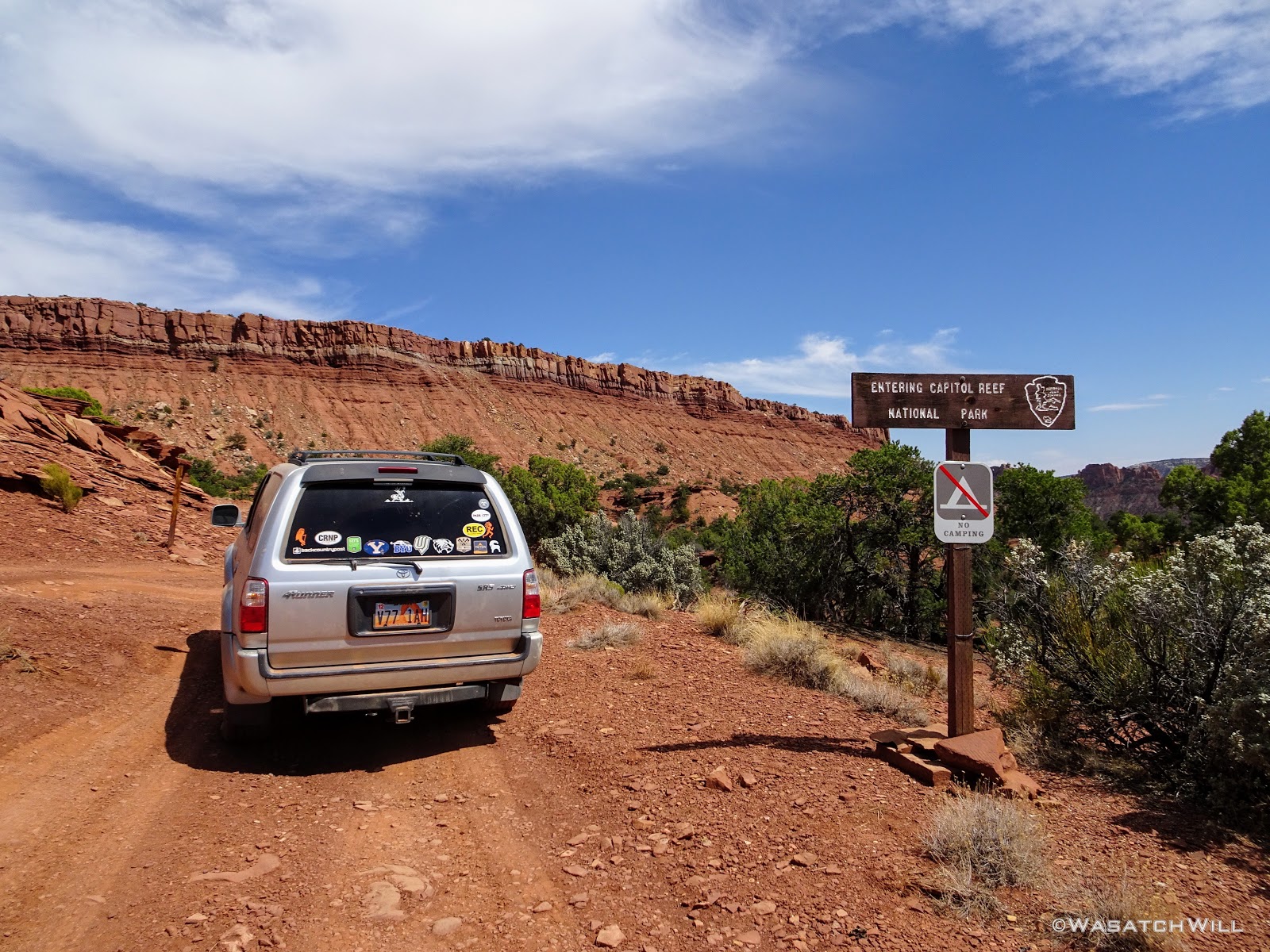 Minutes later, we were passing through the boundary into Capitol Reef National Park and getting ready for the roughest part of the drive. I prepared my 4Runner by letting much of the pressure out of the tires.
