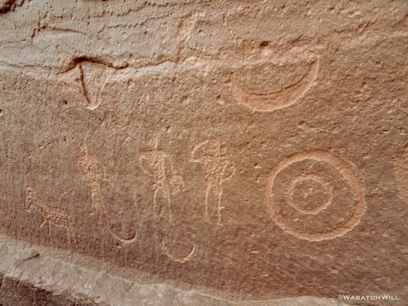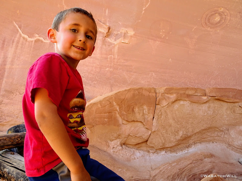 Once down into the bottom of the draw, it was a fair simple and straight forward drive along much of the wash to the Pleasant Creek crossing. There, we pulled over at the trailhead so I could lead Lennox and my father-in-law along for a short hike up to a couple of petroglyph panels.