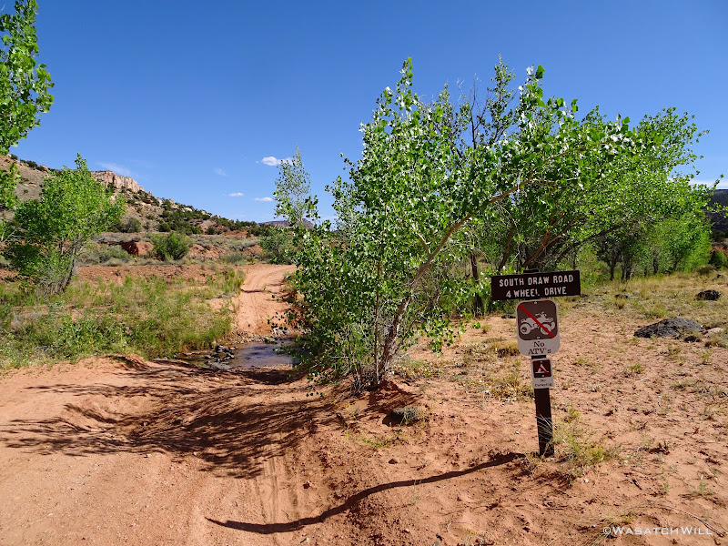 Cresting over and into South Draw provided some great views northward across the western face of the northern half of the Waterpocket Fold. The road was good fun for gaining a bit more off-road experience. I was glad to have my father-in-law along, getting out in a few spots to help spot me through a couple of the tricky bits (see video at end of post). The stock clearance handled it all well.