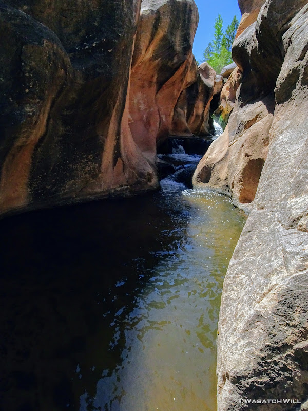 Moving on, we took a little short side road out to Pleasant Creek to enjoy the little slot and waterfall in action there. It sure felt different driving down to it this time from above than hiking to it from below as I had done so the year before.