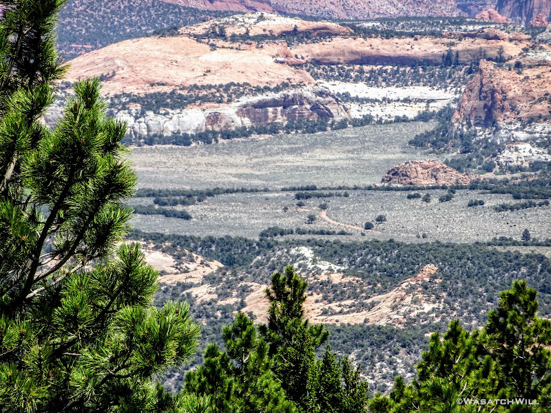 We started by driving up Highway 12 up on to Boulder Mountain from Torrey. We pulled over at one of the overlooks to get a view down across the flats we'd soon be driving through.