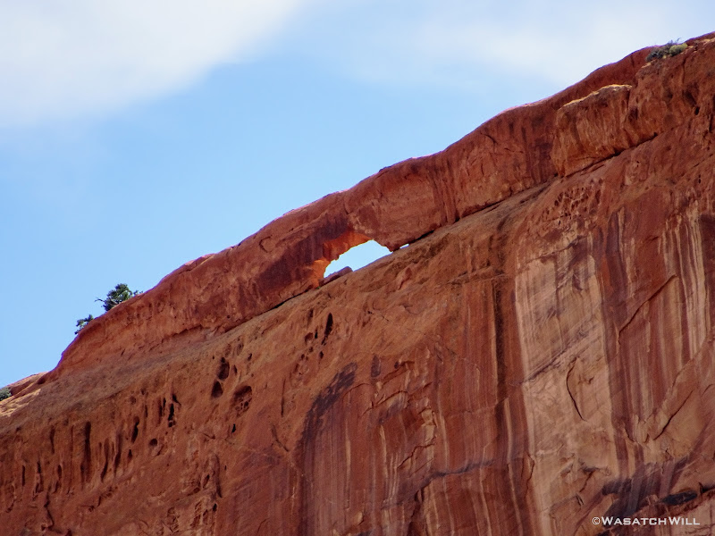 Back on the main route, we drove on across Tantalus Flats and up through Sheets Draw. There was a little arch high up on the ridge of the Salmon. Just a couple weeks before I had been been poking around the Salmon on an overnight hike from Pleasant Creek down through Sheets Gulch. I ended up camping not far from the other side of the arch.