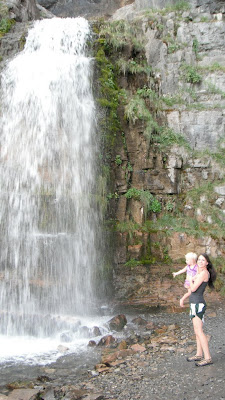 Here I am trying to get Bailey to touch the falls, it doesn't look like we are close enough, but believe me, it was closer than Bailey wanted to get, and we were getting wet.