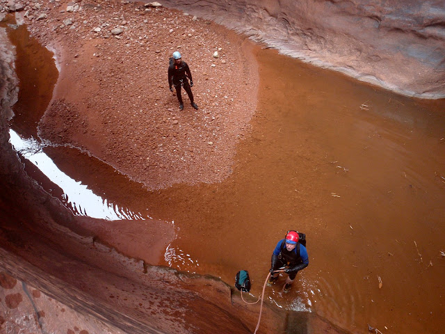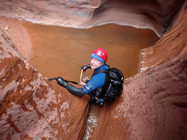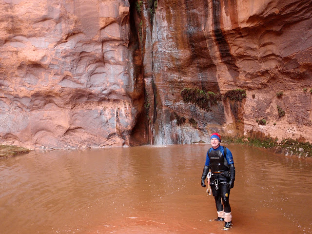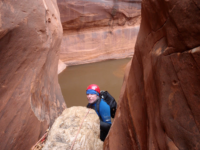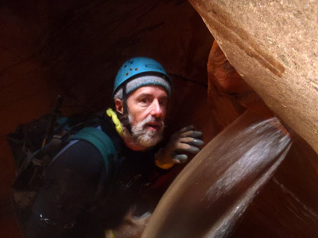 But why does it excite? OK, I’ll admit it. It is a really long, difficult, wet canyon. We are planning a day trip, choosing not to do the hike in to the likely frigid river valley. It is four days past the solstice. How can you fit a hippo in a small closet? And knowing the canyon as well as we do ... oh what fun figuring out the logistics! Some love the anchor challenges best. We do too, but we love the logistic challenges the most. Others love the beauty. We do too. It is sure to be beautiful. But what else? The mystery beckons. What is in there at this time of year that few if any have ever seen? I’s gotsta know!