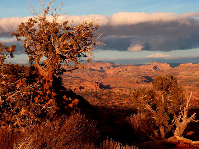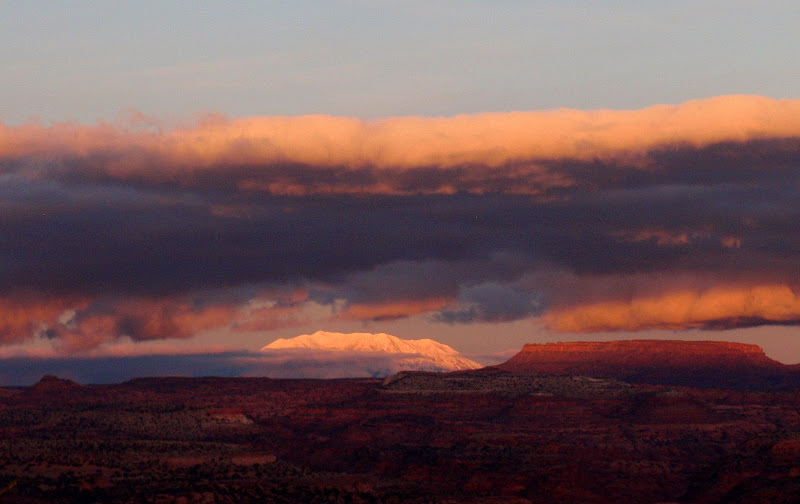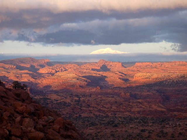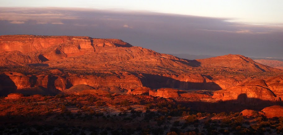 We meet a half an hour early at the edge of pavement and head down the road. It is 2:30 PM after a 9.5 hour drive. The dirt is wet. The dirt is muddy but not too bad, and we find ourselves out at the trail head with over an hour of sun remaining. The air is still and warm in the 40s. The view off the Egypt Bench is stunning in the late afternoon.