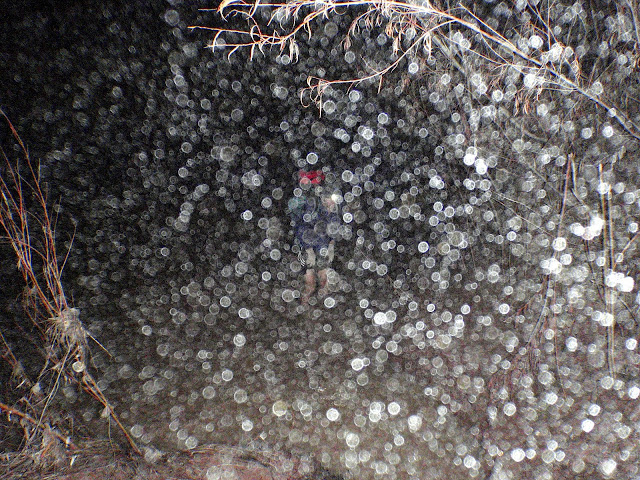 I am wet and somewhat cold, and I take no time on the sunless afternoon to change out of the wet suit. My eyes are on the prize. Getting back to where I know I can find my way home in the dark. I hike the few miles to the river. Soon my partners are on hand. Tim tries to float the river and a rock informs him of his error. He suffers still, I hear. Michelle is determined to float the river. I would like to save the time and there just doesn’t seem to be enough water. Finally at Fence, I strip down after the final river crossing, eat the last of my food, and drink the last of the hot drink. I wait trying to stay warm and hoping to keep my focus and drive. Michelle arrives and soon we take to the final 3–mile hill in fading light.