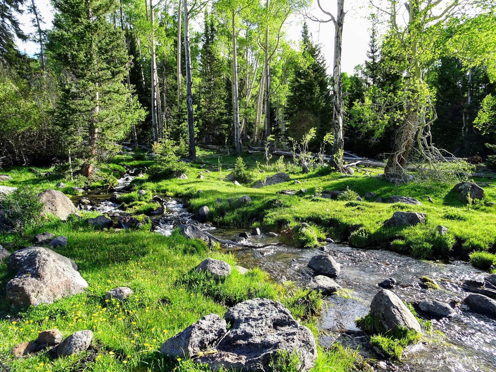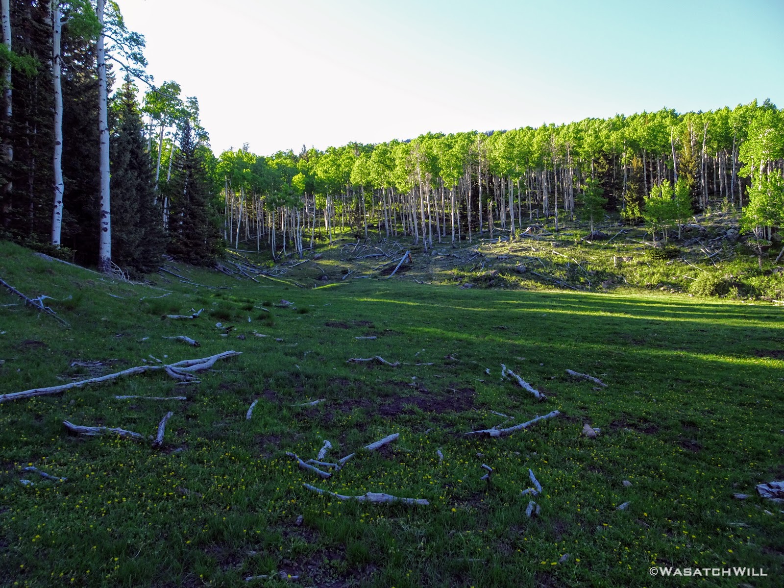 The meadows were pristine and serene, surrounded by a healthy mix of mature aspens and some conifers. We were surprised, stunned even, that we could see no sign of fire rings or camping activity anywhere. Therefore, we wouldn't be changing that with any campfire here of our own.