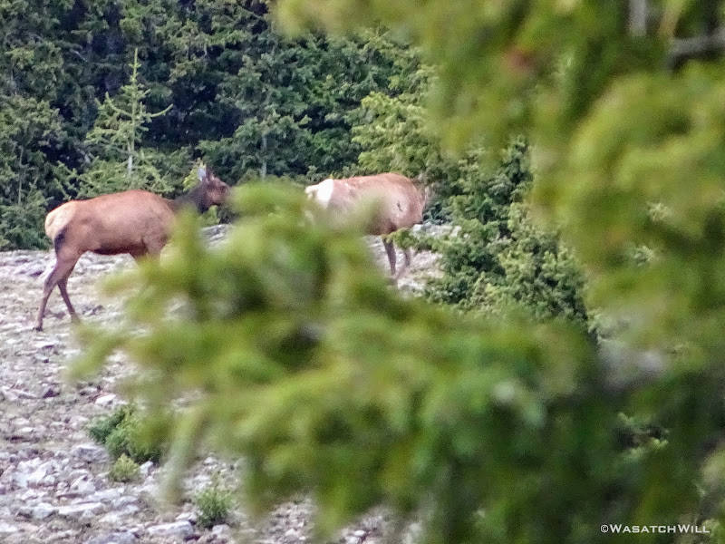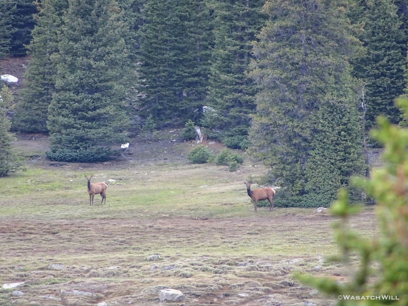 At the far edge of the meadow were a few female elk grazing about.