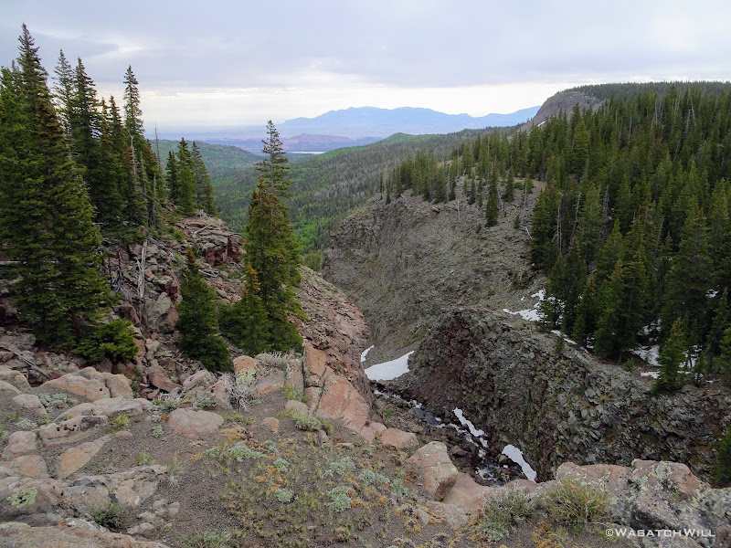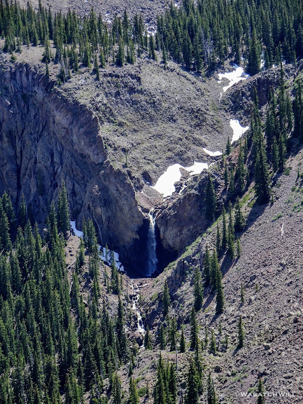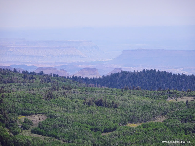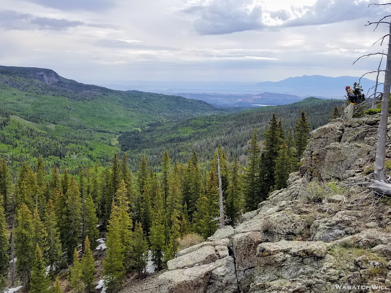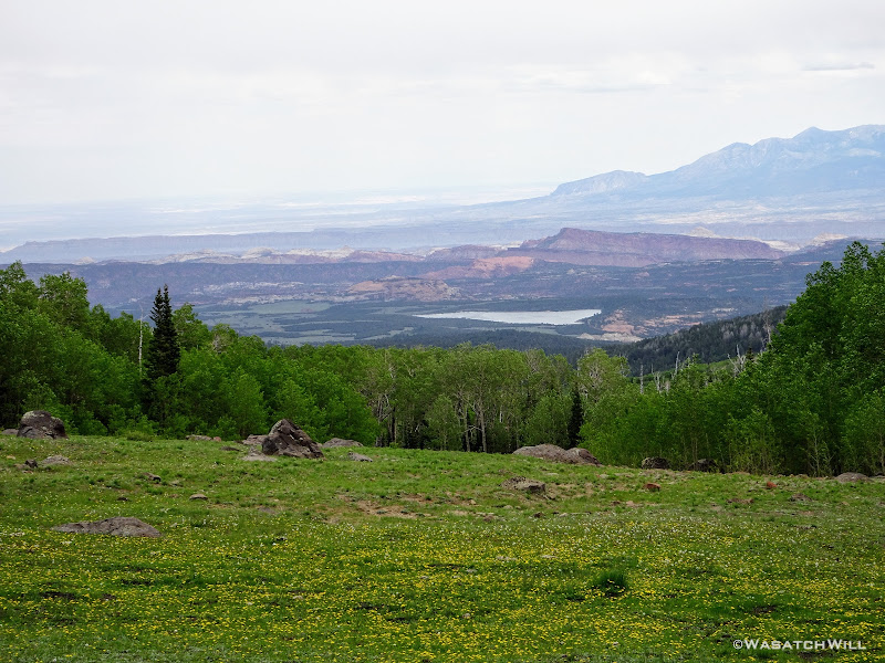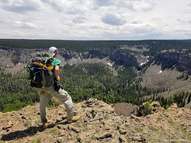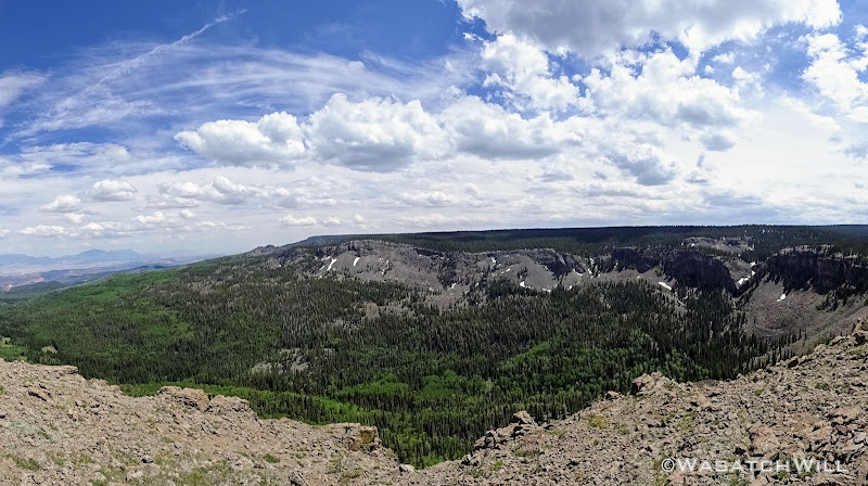 Out of the aspens and near the rim top, the views opened up big time! At some points we could look out and see the waterfall I had just hiked to earlier way back out in the distance.