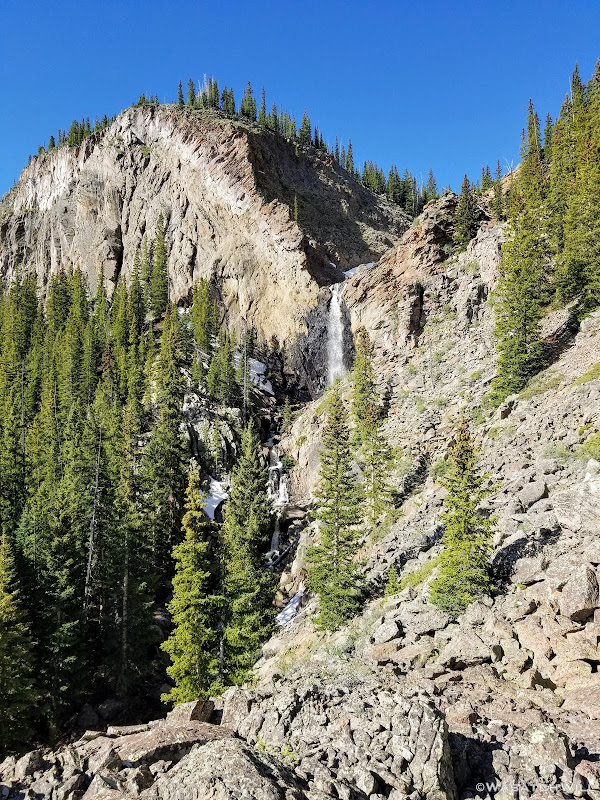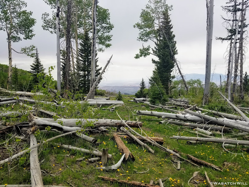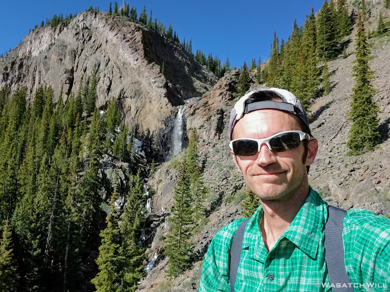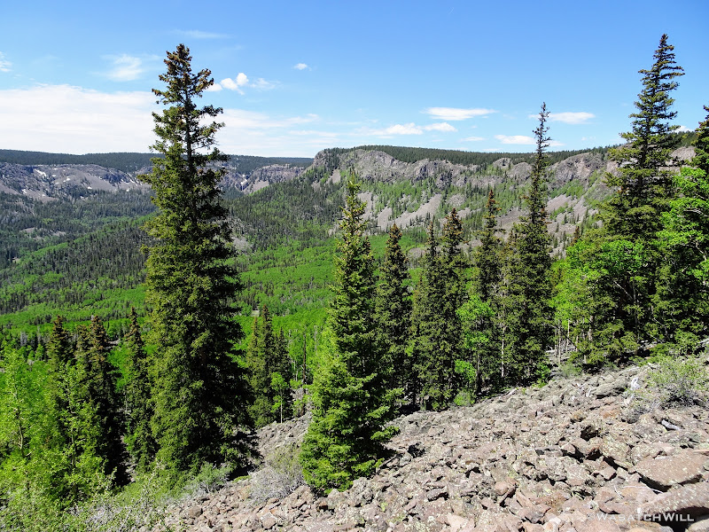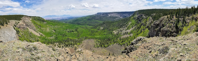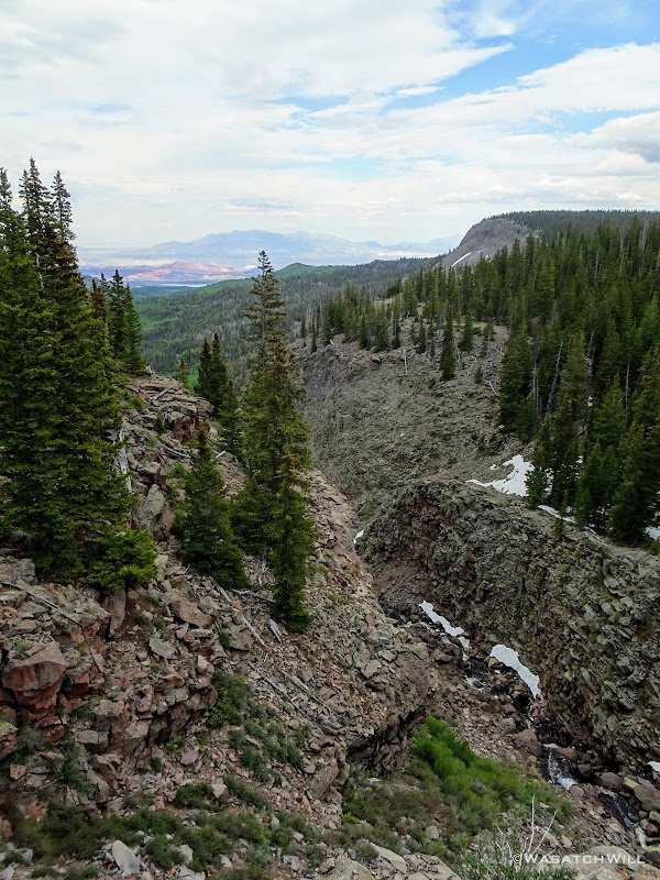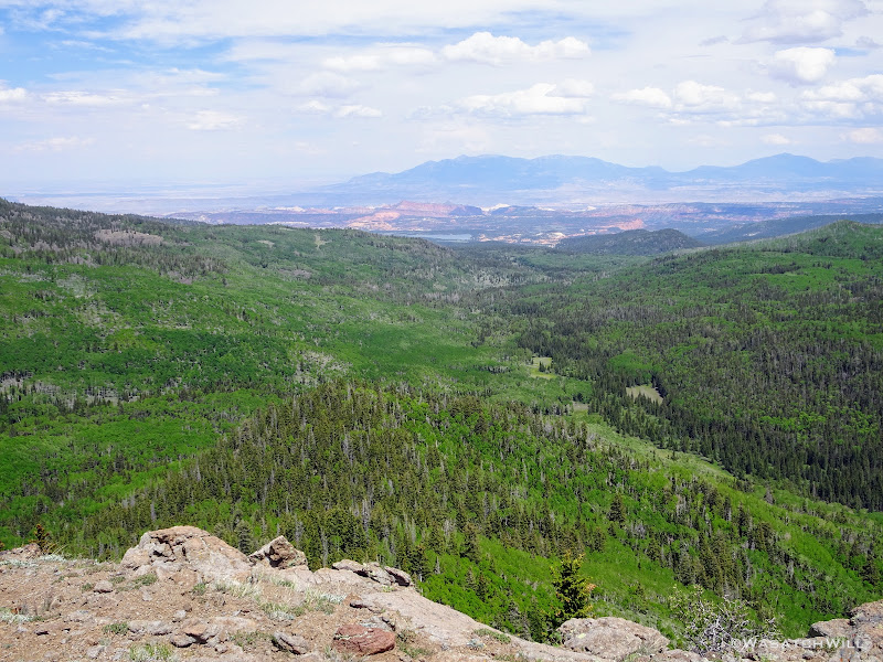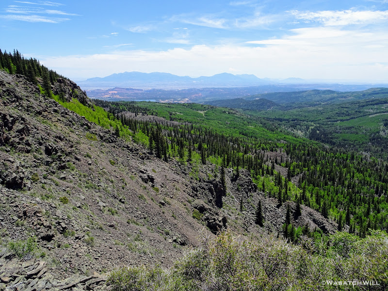 Out of the aspens and near the rim top, the views opened up big time! At some points we could look out and see the waterfall I had just hiked to earlier way back out in the distance.