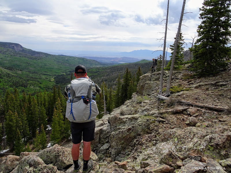 Back at camp, I reunited with Devin and Dane where we tossed our packs back on and began the trek back out to the main trail, then ultimately up to and above the rim. Pleasant Lake was our destination for this day's camp, with over 1000 feet to gain to get to it.