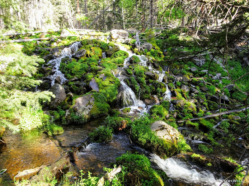 One particular creek crossing featured a gorgeous little cascade descending over green algae covered rocks. So beautiful!