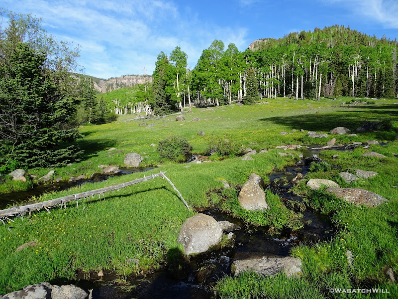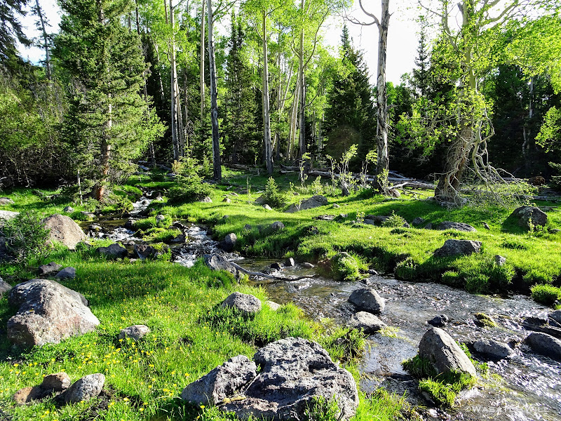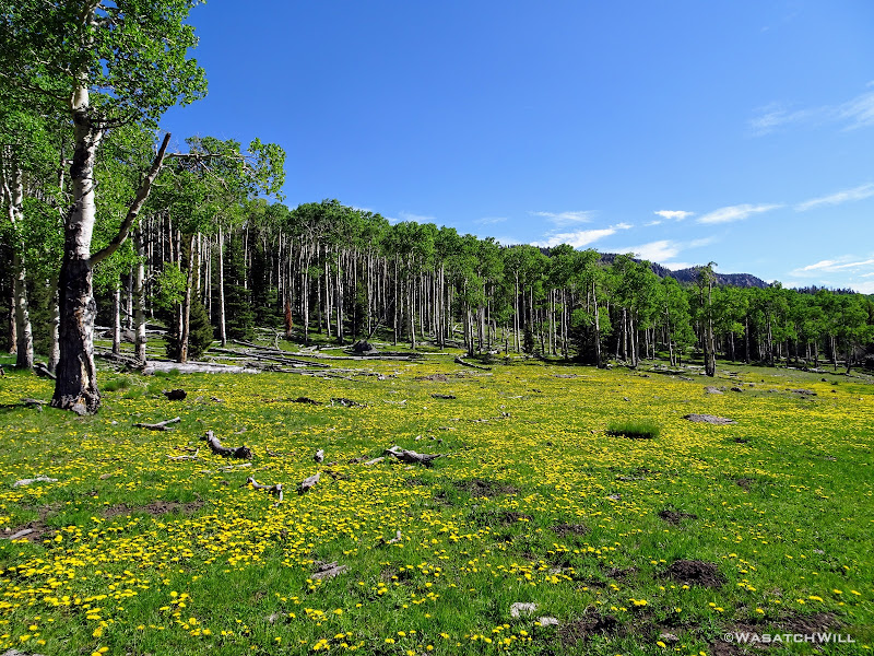The meadows were pristine and serene, surrounded by a healthy mix of mature aspens and some conifers. We were surprised, stunned even, that we could see no sign of fire rings or camping activity anywhere. Therefore, we wouldn't be changing that with any campfire here of our own.