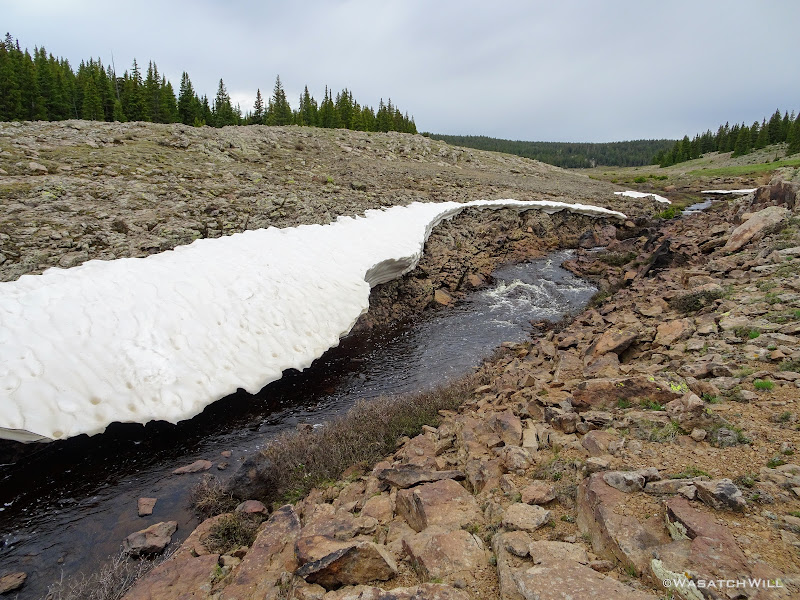 Having given up on the fishing, I wandered out to Pleasant Creek Meadows back out behind our camp. It was neat seeing how the remaining snow banks along the creek had been shaped and eroded.