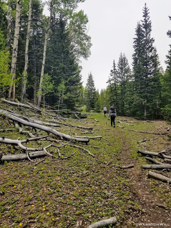 The way down provided another healthy mix of lush green groves of aspens and conifers broken up by peaceful meadows, both large and small. And yet, despite being on on the same side of the mountain with the same kind of vegetation, this trail down presented with a different personality from the one we took up which continued to keep things interesting and new.