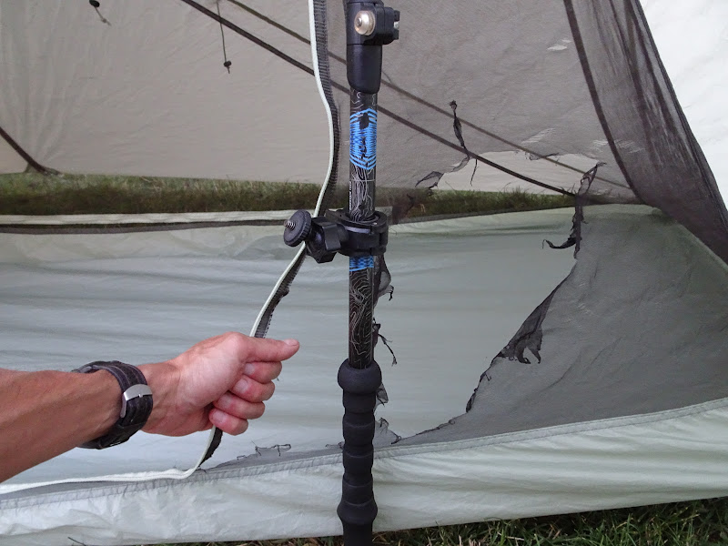 I took the liberty of retrieving our food bags and providing room service with tent-side food deliveries to the other tents. I then returned to my tent where I decided to heat up some water for hot chocolate and oatmeal on my alcohol stove. The plan was to do some reading while the water came to a boil. That turned out to be a big mistake. In taking my attention away from the stove, I failed to realize a breeze had turned up, sending the flames spewing out from the stove out and onto my brand new tent I had just slept in for the first time, despite the stove being a couple feet away from the tent and having a windscreen all the way around it.