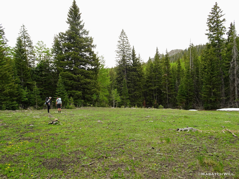 The grandaddy of all the meadows along the way down, Bear Flat, was about half way down. Oddly, this meadow was also surrounded by numerous dead tree trunks, unlike anywhere else along the route we had experienced up to this point,