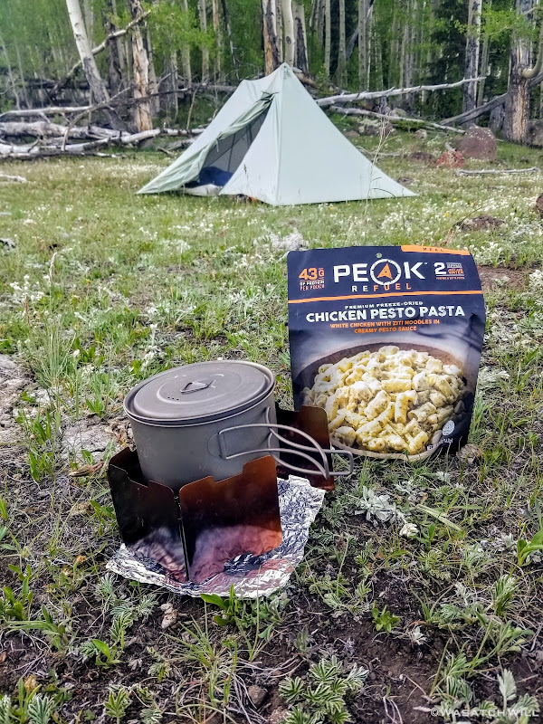 Once we had camp set up, we dove into our dinners. Devin had some extra Peak Refuel meals and offered one of their new flavors for me to try. Chicken Pesto Pasta. It was amazing! Probably the best rehydrated meal in a pouch I've ever had.