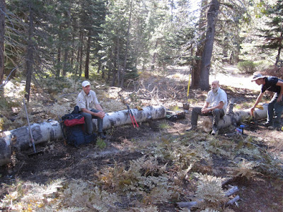 I began by leaving Napa at a little before 5 a.m. to get to the trailhead in time to meet the group, At about 9:30 the first team hit the trail, while others stayed behind to load up the mules with the heavy lifting: tools for the trail. My little group of three split up at the Horse Creek Trail junction, when Greg headed back over the ridge to take care of his ailing wife. Dave and I continued down for another mile or so and set up camp. By the time we had the tents up, the pack team arrived, and everyone else got there soon after to join us for lunch.