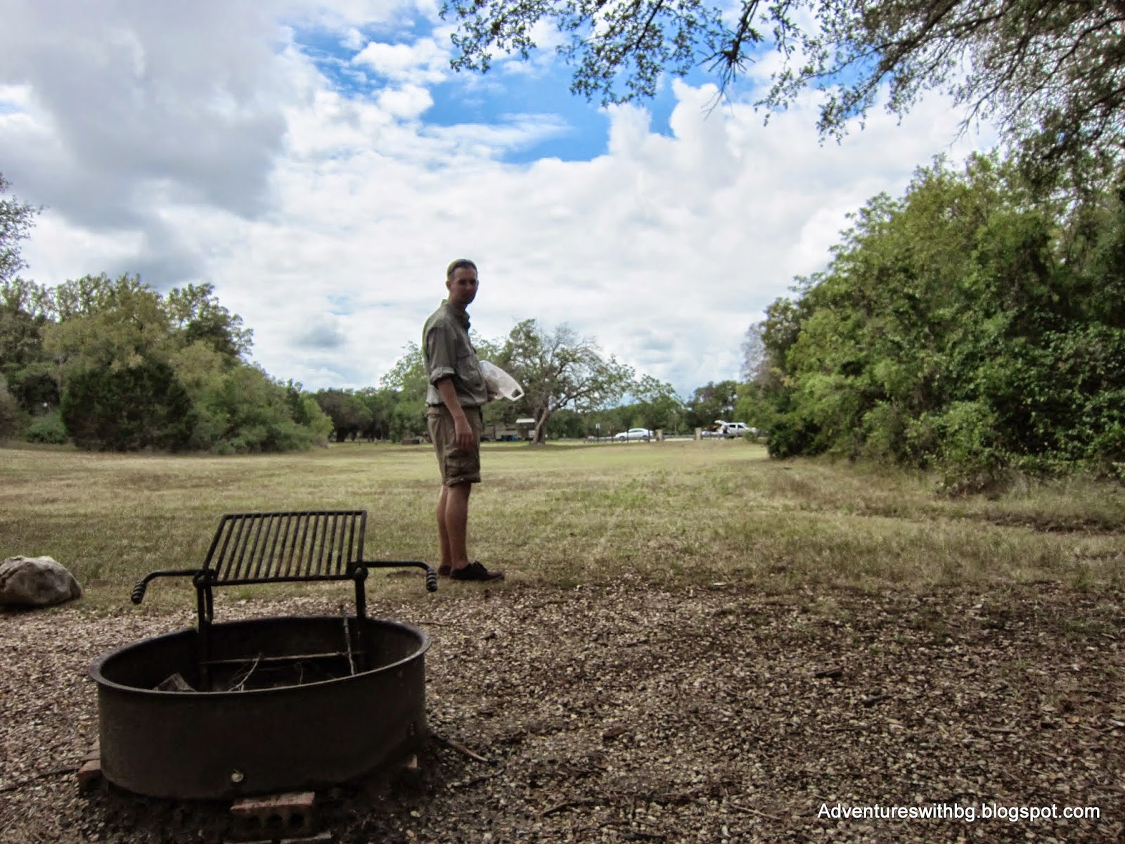 We eventually, found the trail and continued on our way to Jim Hogg Park. Once again, it got dark on us and slowed our progress. While hiking in the dark, we could see lights and smell fires from our probable destination, but it seemed like forever before we made it to Jim Hogg. Goodwater Loop enters the park right by the gate, where we purchased an RV campsite for the night. Jim Hogg had a restroom with potable water where we filled up that night and in the morning. Because our campsite was for an RV, Dustin set up his tent under a pavilion on a concrete pad and I set up mine on the asphalt.