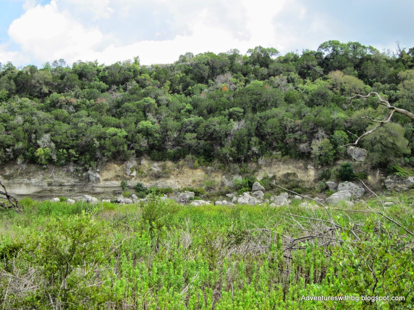 Looking up at the cliffs above the San Gabriel River. We walked those cliffs about 5 mile ago