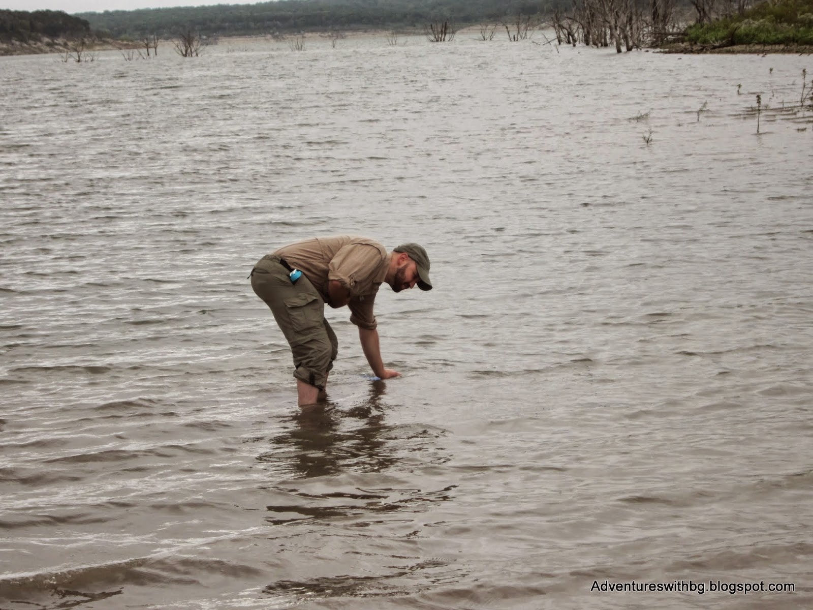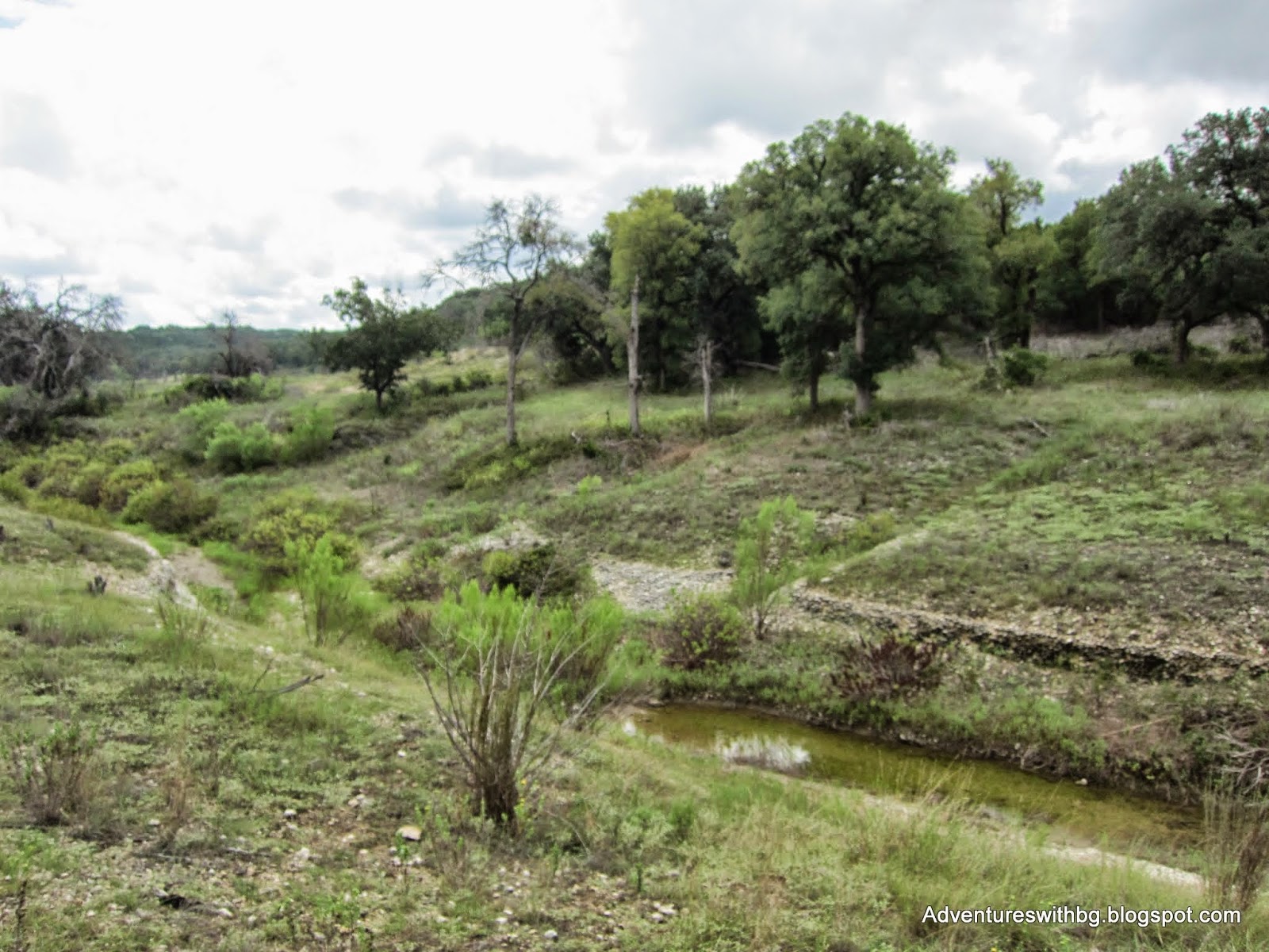 At around 4:30 PM we regrouped and the hike began again. We quickly made it to mile 1 and saw the familiar cliffs overlooking the lake. Even after the rains, Lake Georgetown was still extremely low. Around mile 3, the trail heads into grasslands before reaching Crockett Garden and Crockett Creek. On this trip,we actually made our way down to Crockett falls and it was an amazing view despite the smell coming from a dead skunk. If didn't need to walk so far that day, it would have made an good campsite.