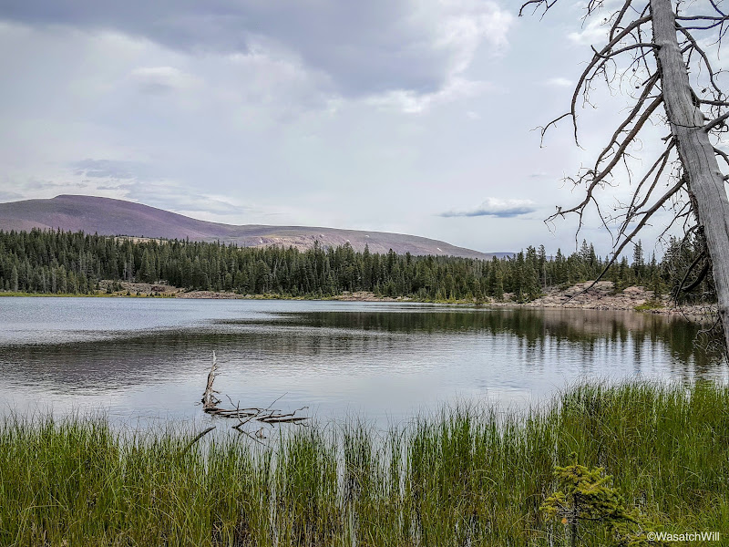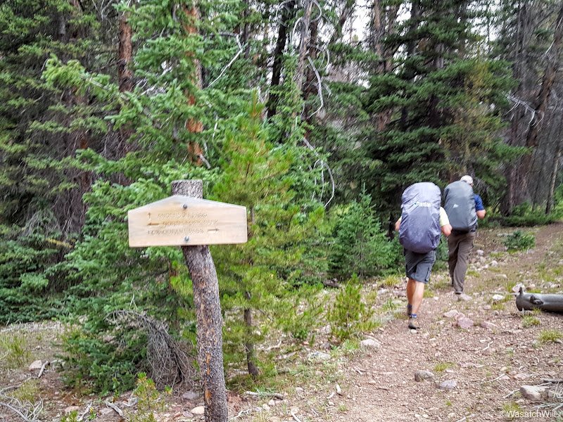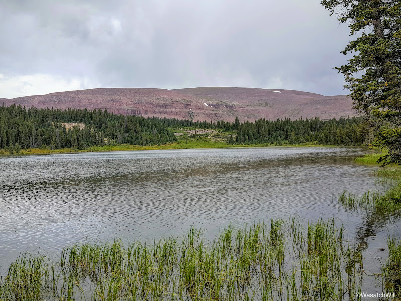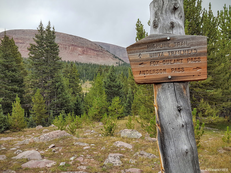 We also encountered quite a number of other Highline section and thru-hikers along the way going eastward. Some solo, others in groups of two, three, and four. Some were aiming to finish at Chapeta Lake while others, if I remember right, were looking to continue on to Leidy Peak and Hacking Lake. Some had hoped to bag Kings Peak that same morning, which is only a little over a half mile from where the Highline Trail crosses over Anderson Pass, but the weather that morning had kept them off of it. Kings Peak stands as the highest point in Utah at 13, 528 feet above sea level and it was on our own agenda for the next day.